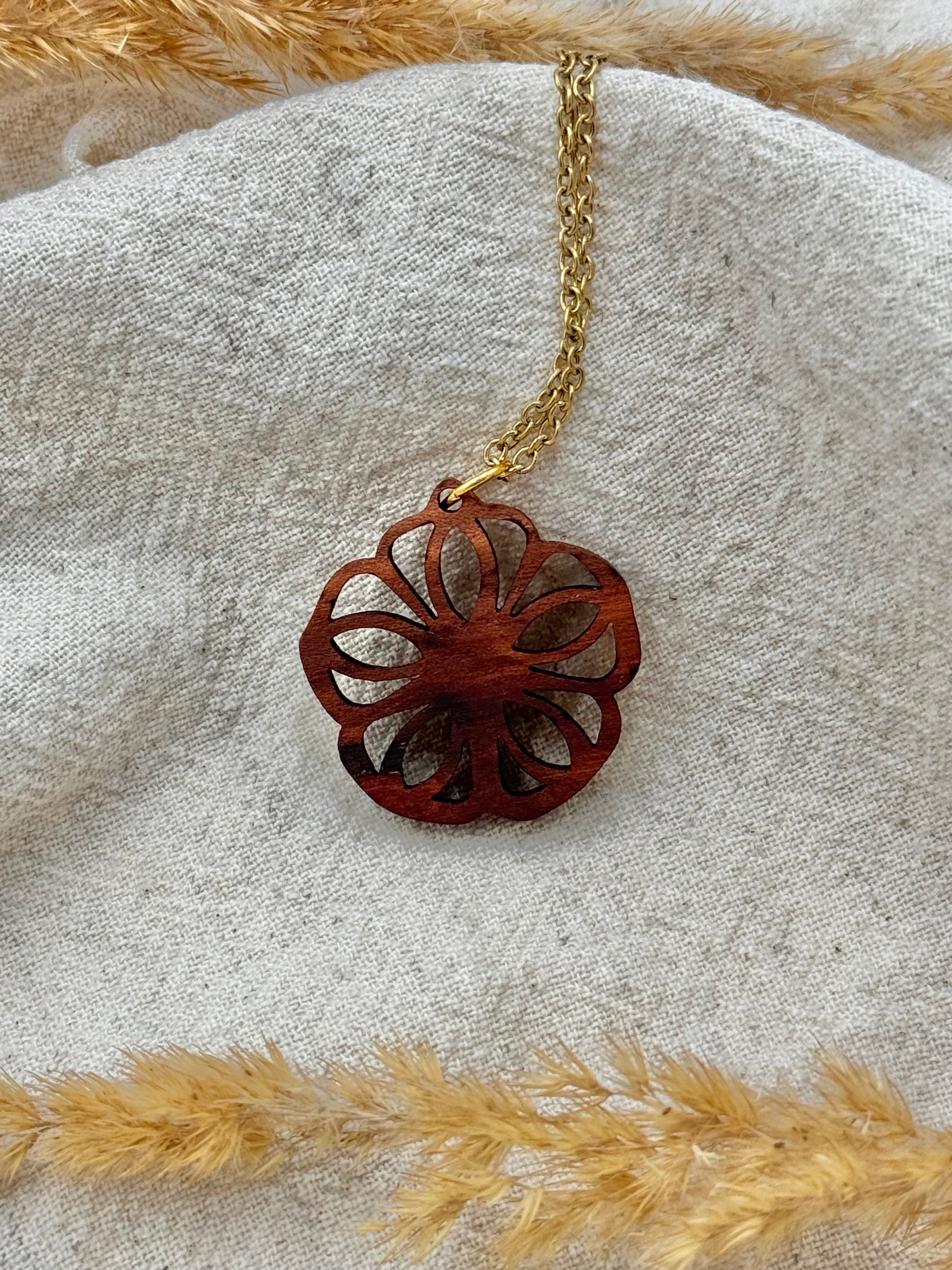 Die warme Ausstrahlung des Holzes macht die Kette zu einem besonderen Blickfang – perfekt für den Alltag oder als stilvolles Accessoire bei besonderen Anlässen.