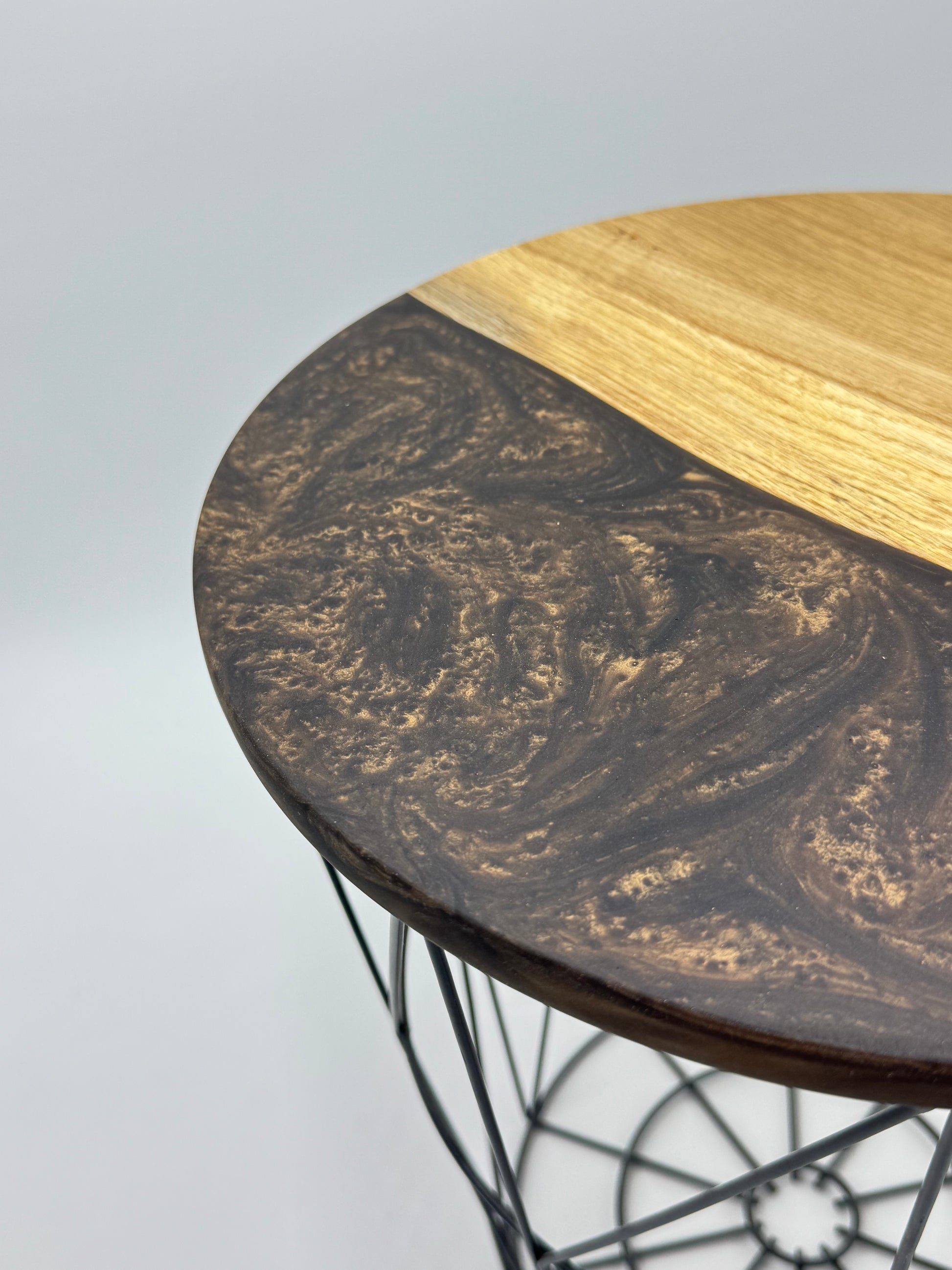 Der Couchtisch beeindruckt mit ausgewähltem Holz und farbigem Epoxidharz, präzise verarbeitet in einer Größe passend für Deine vier Wände.