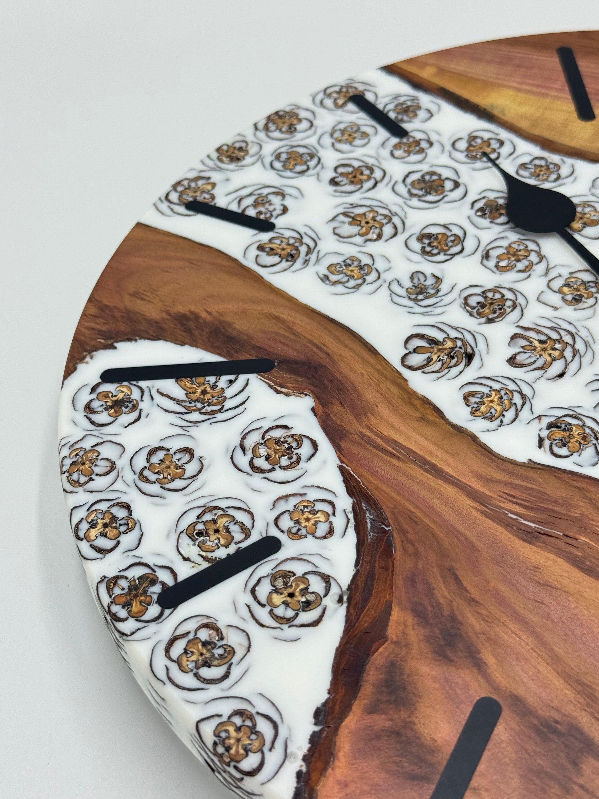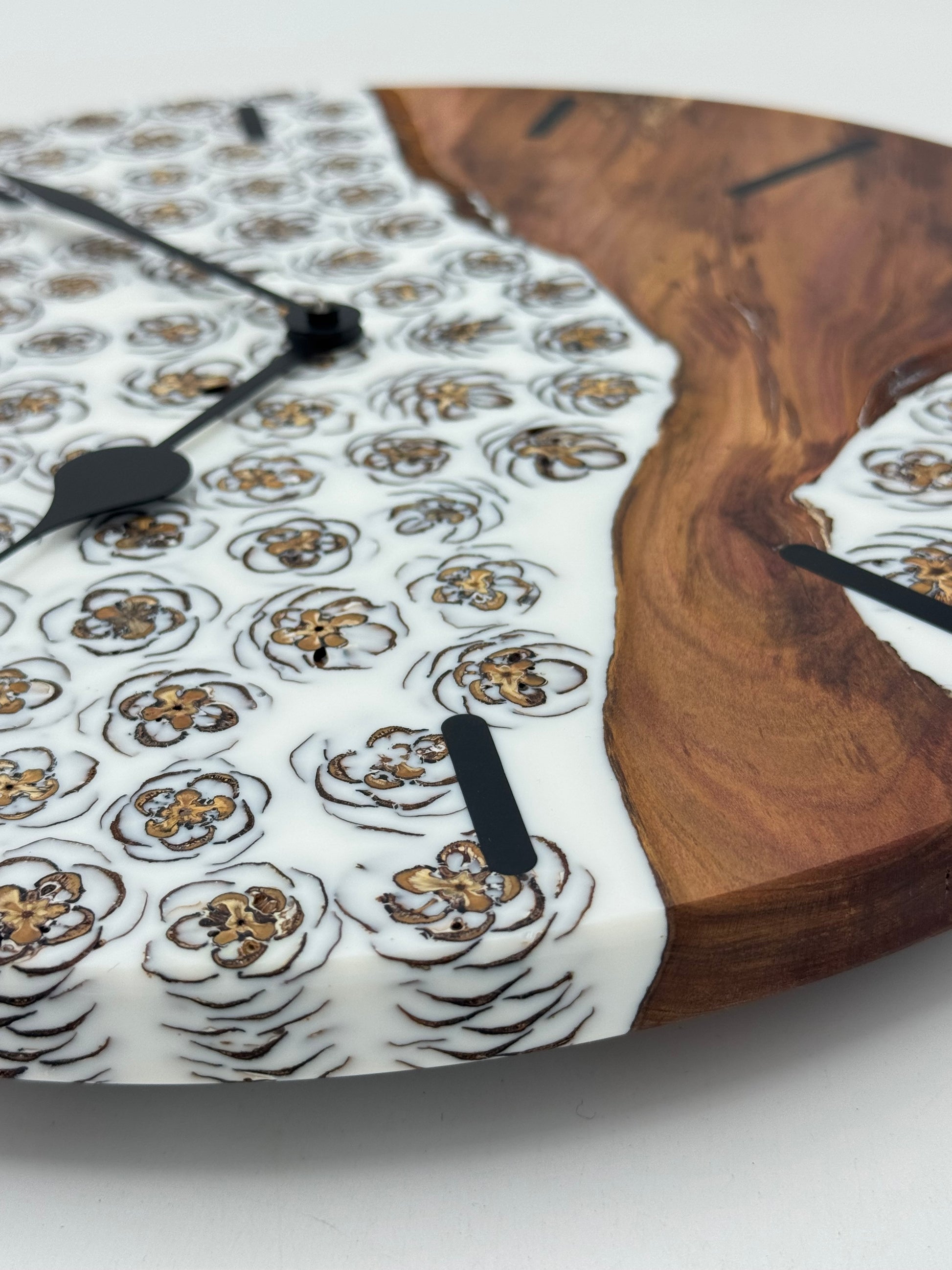 Bringen Sie zeitlose Eleganz mit unseren handgefertigten Holz- und Epoxidharz-Wanduhren in ihr Zuhause! Jede Uhr wird in einer kleinen Manufaktur im Chiemgau, Bayern individuell gefertigt, wodurch ein einzigartiges Kunstwerk entsteht.